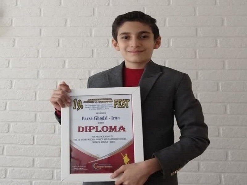 «پارسا قدسی» دانش‌آموز ۱۲ ساله کرمانشاهی، موفق به کسب دیپلم افتخار در نوزدهمین جشنواره بین‌المللی کارتون و کمیک کشور «کوزوو» شد.