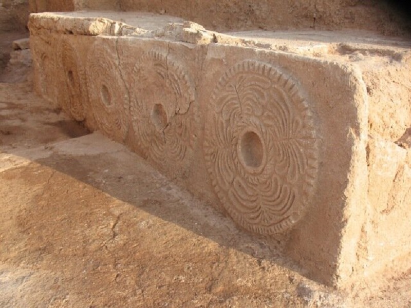 وی به کشف تعدادی گچبری با نقش نخل، چاه آب به عنوان نماد تجلی ایزد آناهیتا در آتشکده و تعدادی پایه آتشدان در این بنای تاریخی اشاره کرد و گفت: در بخشی از بنا سه پایه آتشدان گچی در راس یک سکوی تی(T) شکل قرار گرفتهاند و با ادامه کاوشها قطعه دیگر از پایههای گچی را پیدا کردیم که مشخص شد بخش بالای سه پایه گچی هستند. هر چند کارکرد آنها دقیقا مشخص نیست، اما برخی از باستانشناسان بر این عقیدهاند که این پایههای گچی شاید محلی بوده که ظرف فلزی حاوی آتش مقدس روی آنها قرار میگرفته و یا اینکه روی این پایهها یک تخت قرار داشته که جایگاه نشستن یک شخص مهم همچون پادشاه یا حاکم منطقه بوده است.