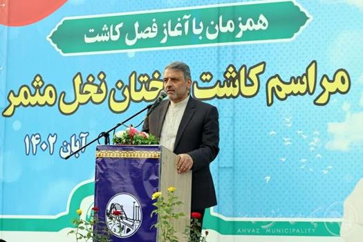 شهردار اهواز با اشاره به برنامه‌ریزی برای کشت ۵ هزار نخل جوان در شهر اهواز، گفت: نخل باید یکی از نمادهای تشخیص هویت اهواز باشد اما با وجود زحمت‌های فراوان، فعلا شرایط این گونه نیست و باید نخل‌های بیشتر و با روش‌های علمی در شهر اهواز کشت و نگهداری شود.