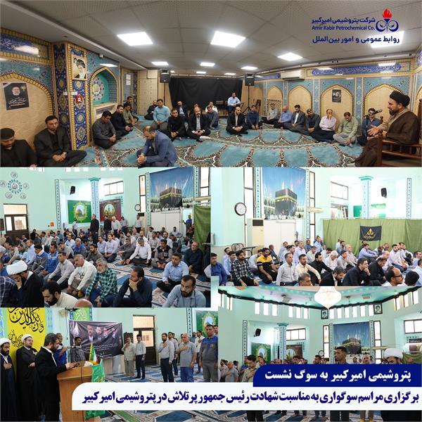 در پی شهادت رئیس‌جمهور انقلابی، مردمی و خستگی ناپذیر، حضرت آیت الله رئیسی و همراهان ایشان، شرکت پتروشیمی امیرکبیر به سوگ نشست.