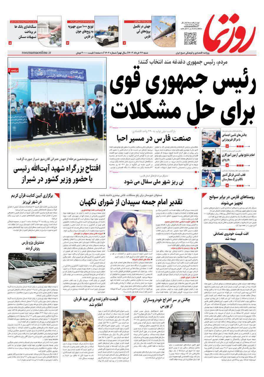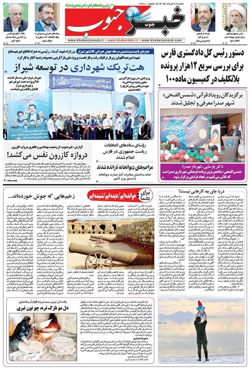 صفحه نخست روزنامه‌های 26 خرداد فارس 1403